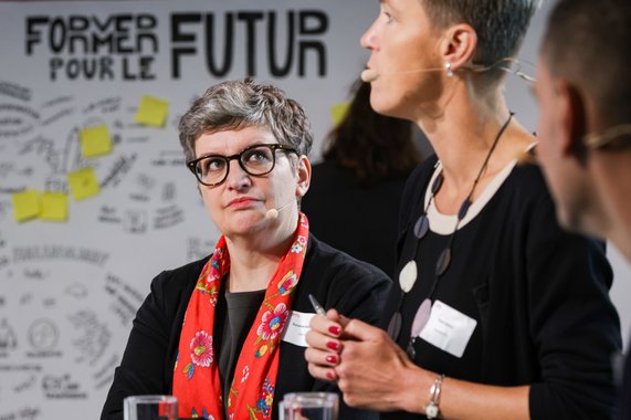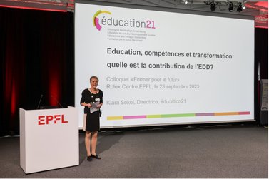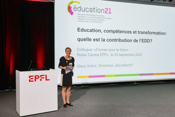 Klara Sokol, directrice du Centre de compétences national éducation21 (Éducation en vue d’un Développement Durable), a expliqué l’importance de la transmission de compétences transversales, c’est-à-dire interdisciplinaires, pour permettre une transformation de la société. Mais elle a également reconnu que la finalité de l’éducation, les moyens appropriés et leur opérationnalisation ne peuvent pas être définis une fois pour toutes, en raison d’urgences écologiques et sociales qui changent quotidiennement ou presque, mais qu’ils sont redéfinis en permanence. La finalité de l’éducation doit être négociée politiquement et juridiquement, la structure pédagogique et didactique adaptée aux besoins des apprenant·e·s et la science popularisée. À nouveau, la collaboration de l’ensemble des acteurs impliqués est nécessaire.