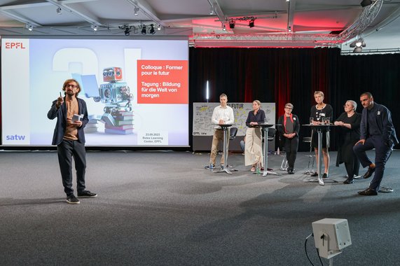La conférence « Former pour le futur » qui s’est tenue en trois langues était co-organisée par l’Académie suisse des sciences techniques (SATW) et le Service de promotion de l’éducation de l’EPFL. Plus de 200 enseignant·e·s et formateur·rice·s tous niveaux confondus, conseiller·ère·s en orientation et personnes œuvrant en faveur de la promotion de la relève dans les formations MINT ont participé à cette conférence organisée le samedi 23 septembre, par une belle journée ensoleillée.